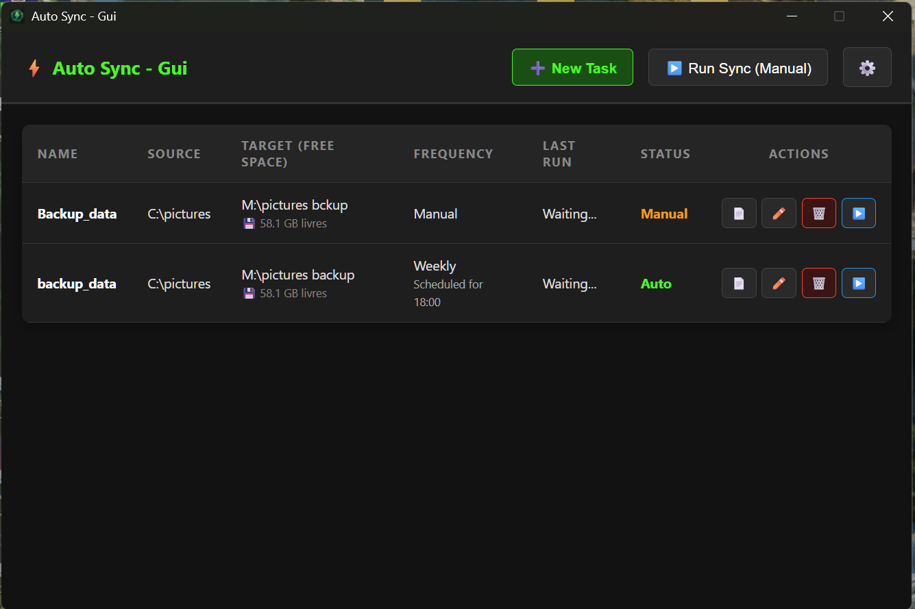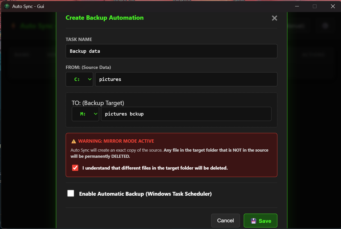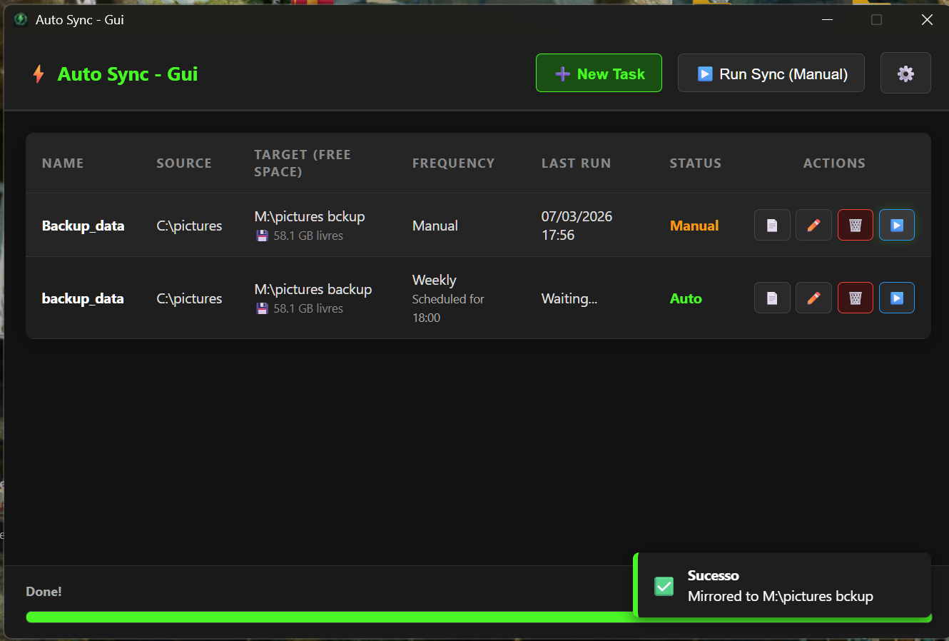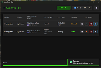 Tired of losing hours of work, precious game saves, or family photos? Stop relying on slow cloud uploads or struggling with complex command lines and scripts. Auto Sync GUI is your personal, set-and-forget local backup assistant. It works flawlessly right out of the box—zero coding required.